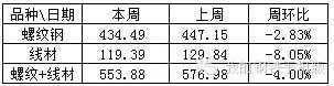 图表一:全国139家样本钢厂螺纹钢周生产情况调查统计(单位:万吨)