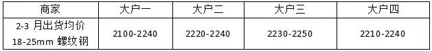 另据笔者调查,2-3月份部分大户三级大螺纹的日均出货均价如下: