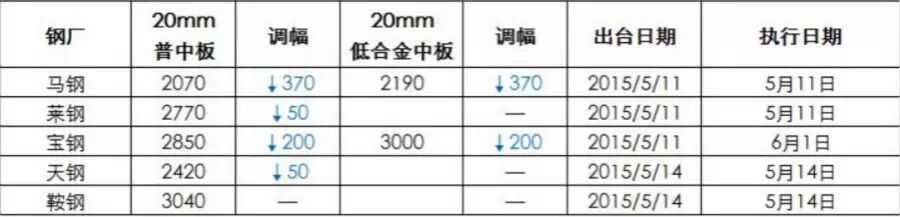 鉴于目前市场供需形势依然严峻,预计下周国内建筑钢材市场价格仍以弱势回调为主,但下行空间有限,钢厂出厂价格或继续下调。(除特别备注外,上述调整幅度及执行价格均为含税)。 本周中板钢厂调价汇总